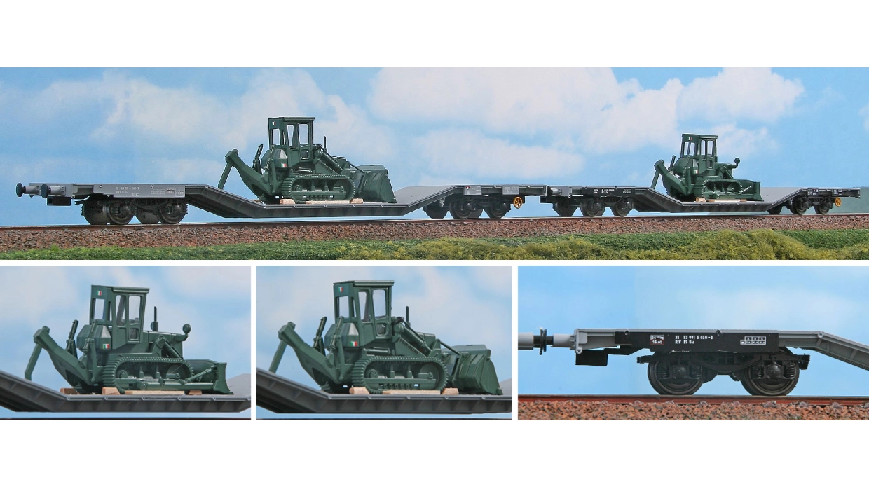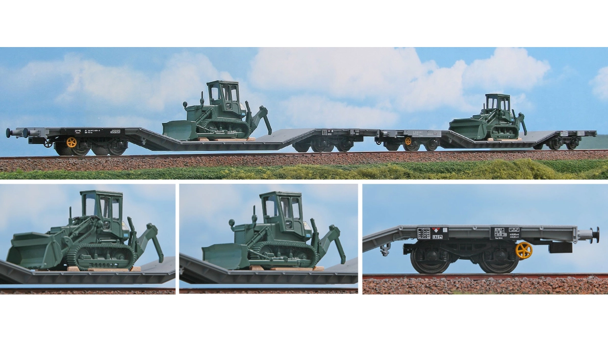 Set di 2 carri Tipo Uai delle Ferrovie dello Stato Italiane (FS) con carico di dozer militare, epoca IV/V.