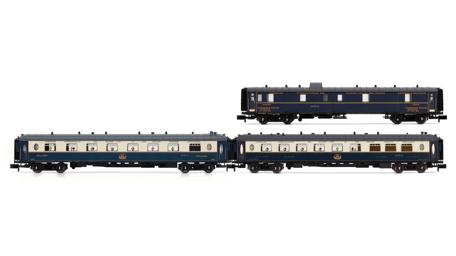 Set di 3 carrozze “Étoile du Nord” delle Compagnie Internationale des Wagons-Lits (CIWL) composto da un bagagliaio DD3, una carrozza salone VP “Flèche d’Or” ed una carrozza salone VPC “Étoile du Nord” con cucina, epoca II.