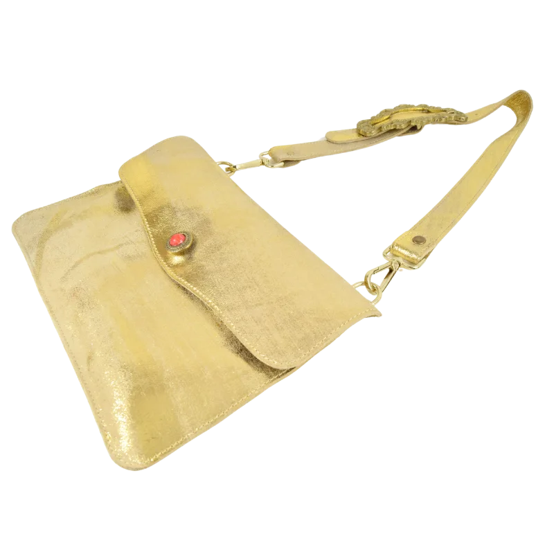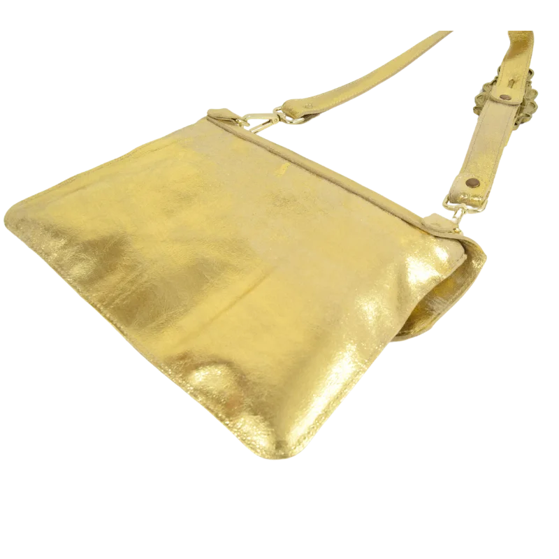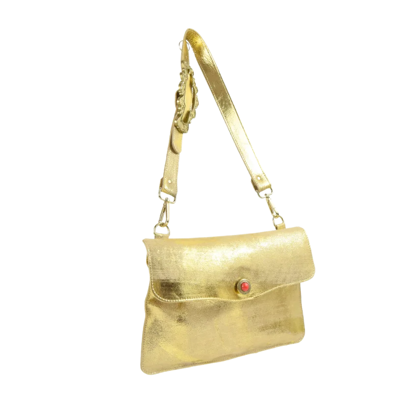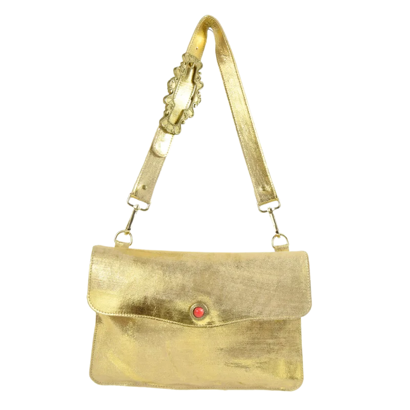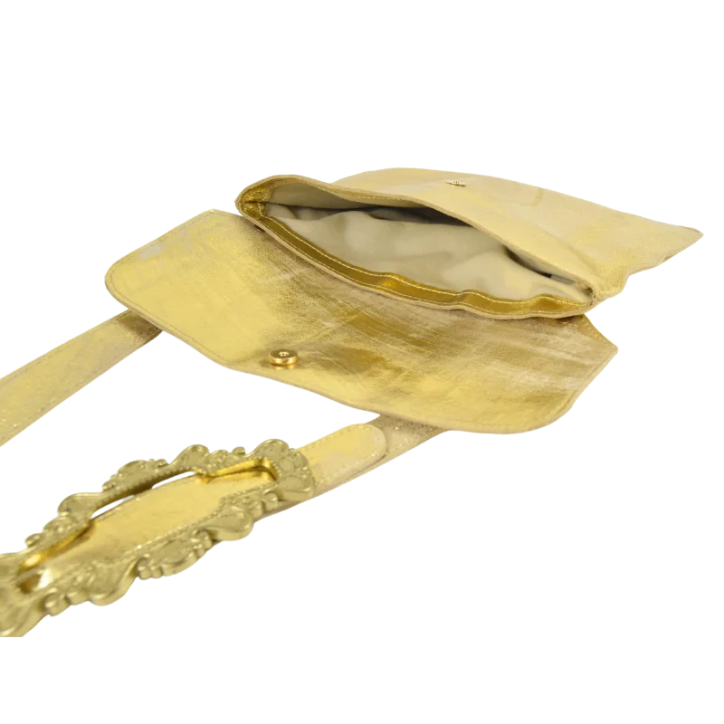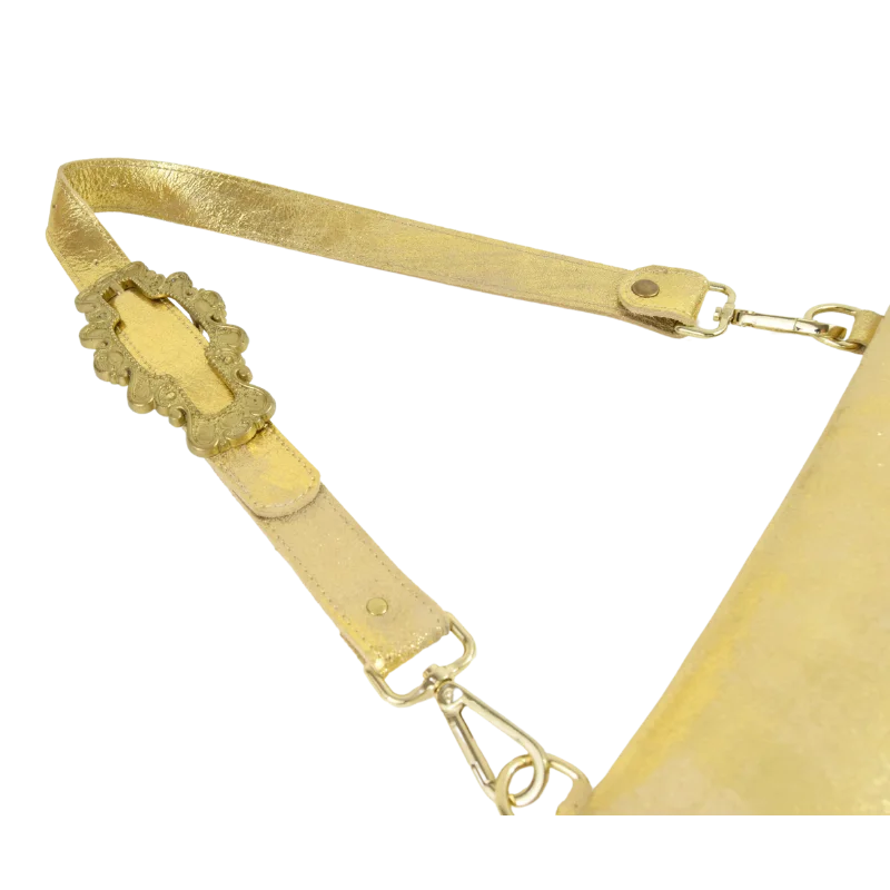 - Realizzata al 100% in vera pelle scamosciata con effetto pennellata laminata dorata.