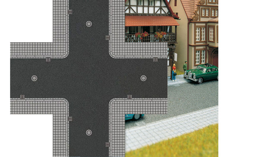 Incrocio stradale con marciapiede.