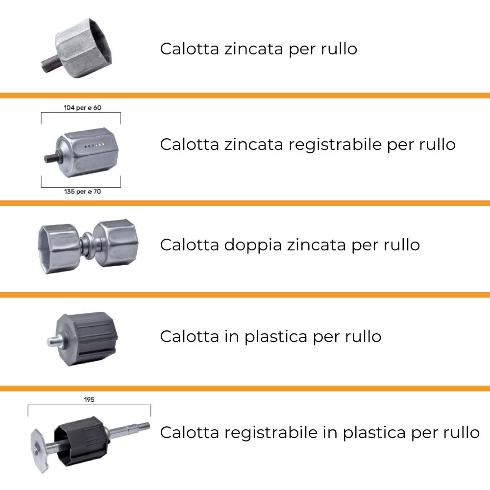 •Caratteristiche: Queste calotte registrabili offrono la possibilità di regolazione per adattarsi perfettamente al rullo, migliorando la stabilità e la flessibilità durante l’installazione.
