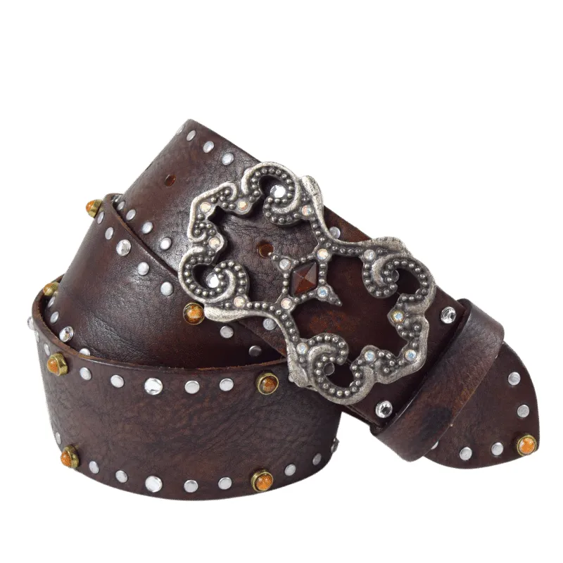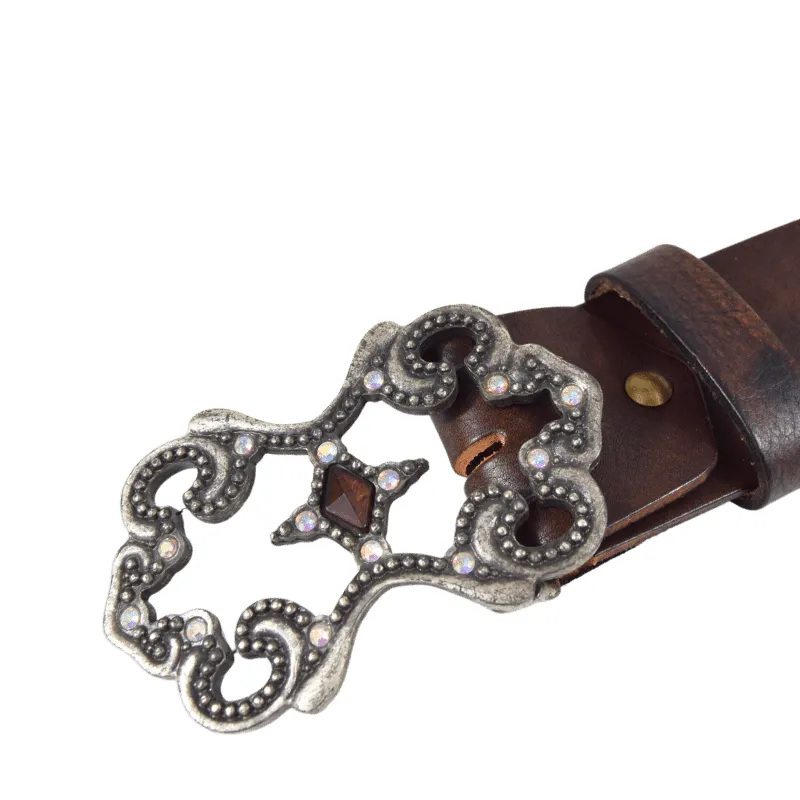 Altezza 5cm. Fibbia in zamak galvanica argento effetto invecchiato. Strass boreali e simil pietra centrale taglio diamante.