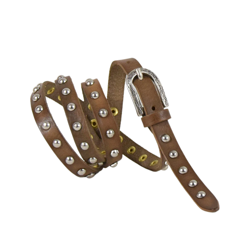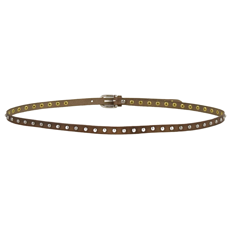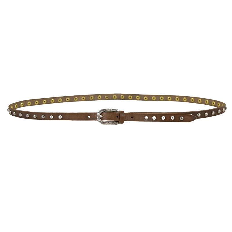Altezza 1,5cm. Fibbia in zamak galvanica argento invecchiato. Borchiata interamente a mano con rivetti color argento.