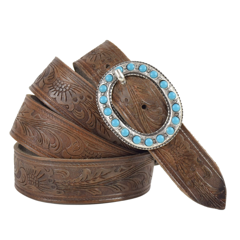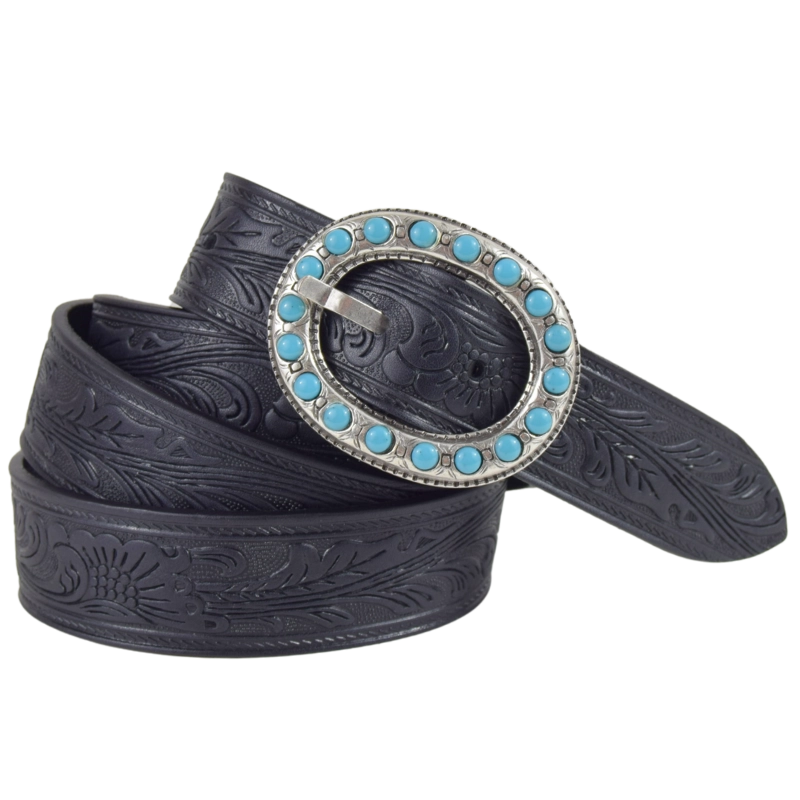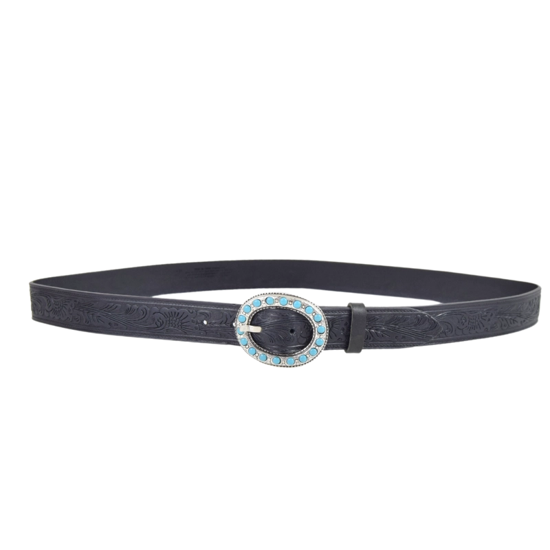 - Fibbia in zamak e galvanica argento invecchiato. Impreziosita con simil pietre turchesi