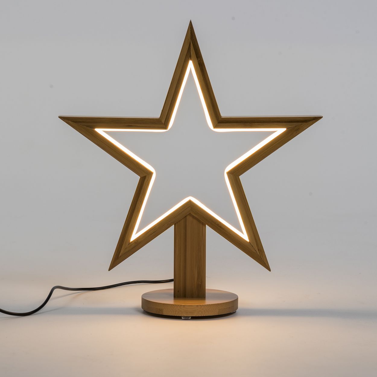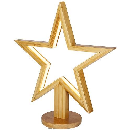 Decorazione luminosa stella led legno con base luce fissa H 35 cm