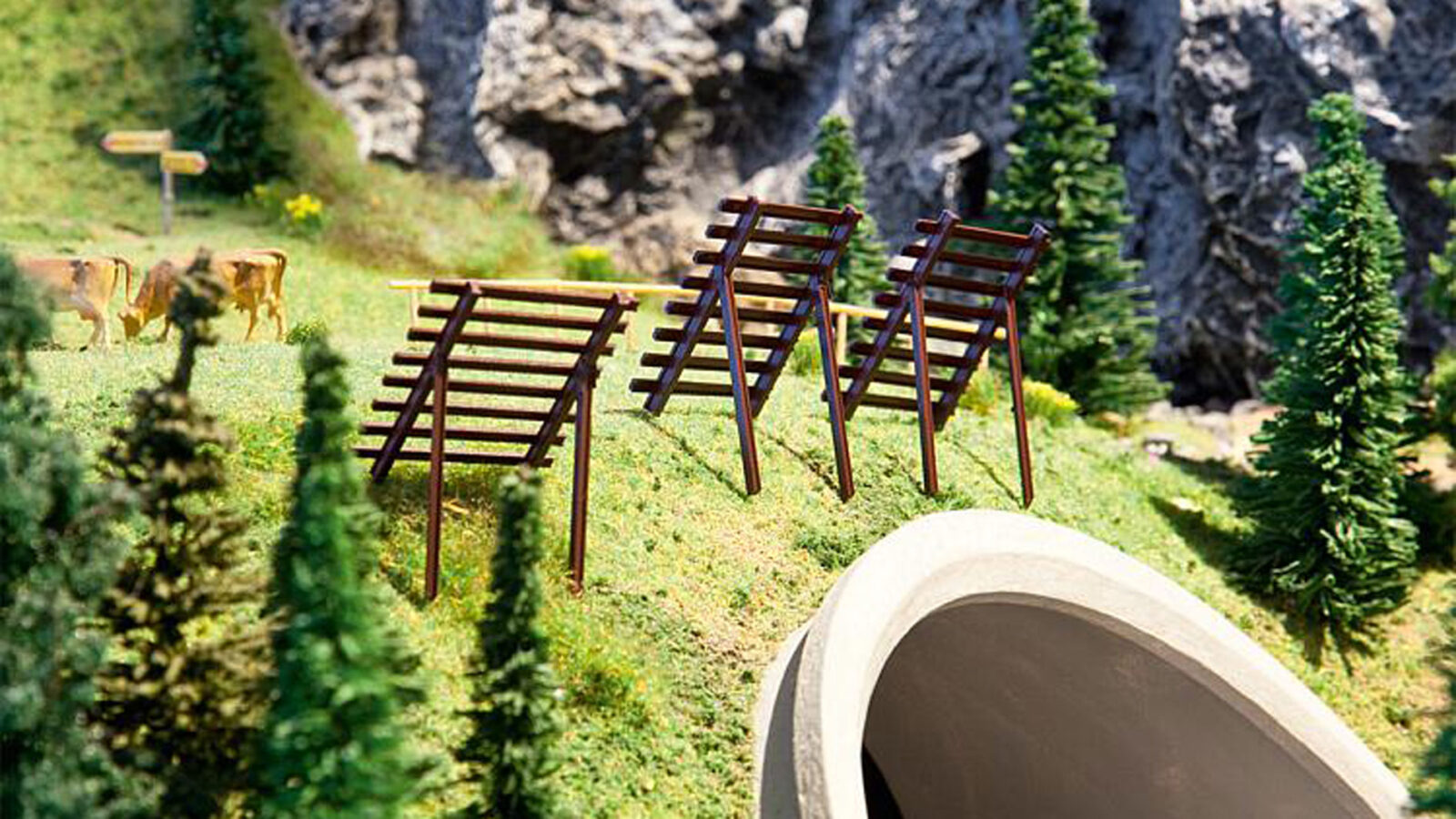Strutture di supporto nelle aree alpine per la stabilizzazione degli strati di neve. Il kit include 10 barriere.