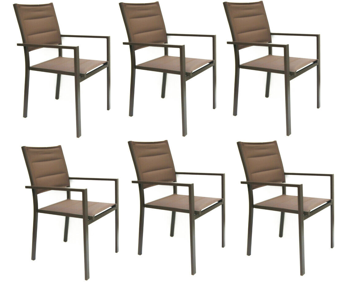 Kit 6 sedie con struttura in alluminio verniciato, seduta e schienale in textilene leggermente imbottito