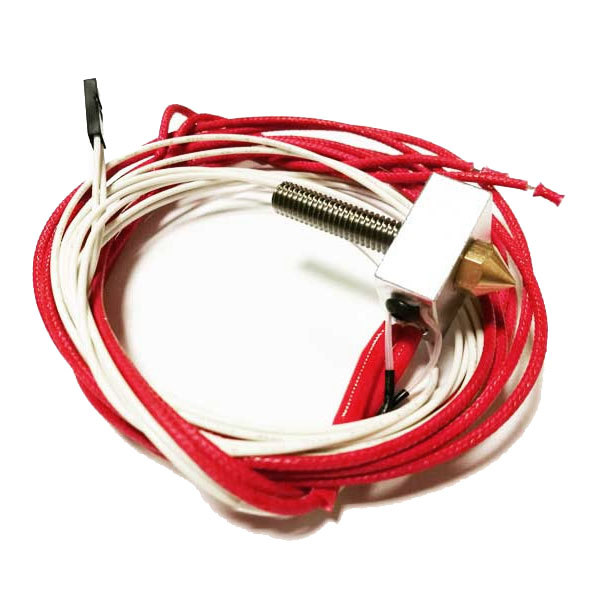 Il blocco estrusore è realizzato in alluminio ed è completo di blocco calore, cavi per il collegamento e un sensore di temperatura. L’estrusore presenta un ugello dal diametro di 0.4mm e un tubo di scorrimento da 1,75mm. Si prega di verificarne la compatibilità con il proprio filamento prima dell’acquisto.