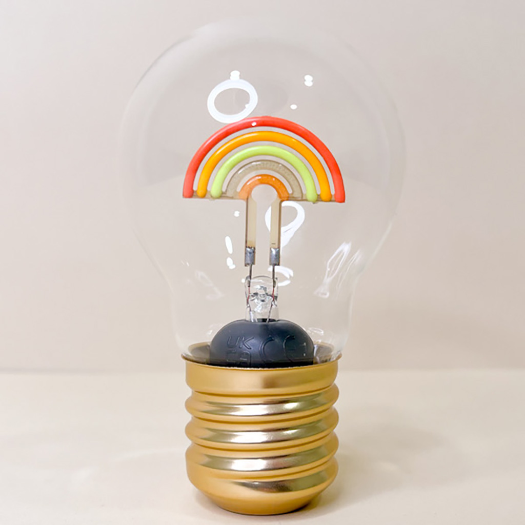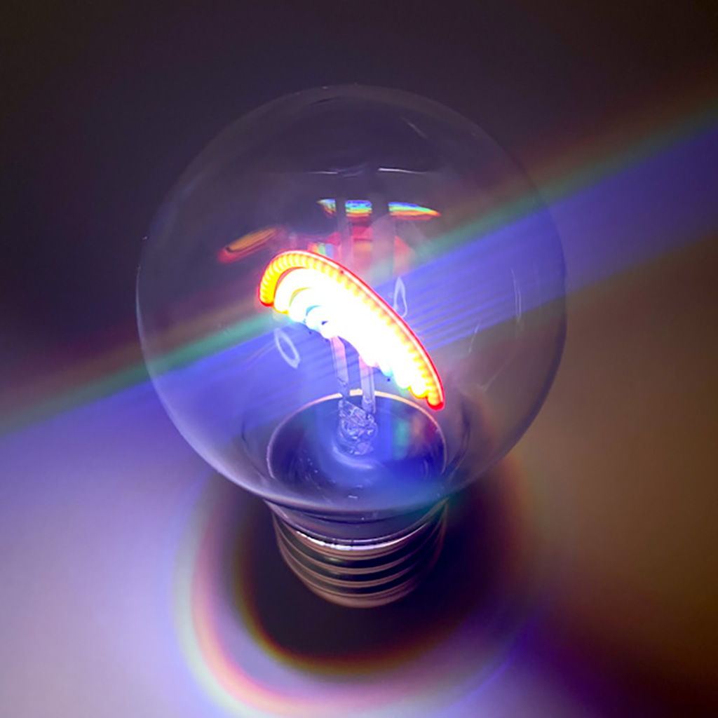 Questa lampadina unica ha un arcobaleno brillante all’interno, e crea un’atmosfera vivace e gioiosa in qualsiasi ambiente.