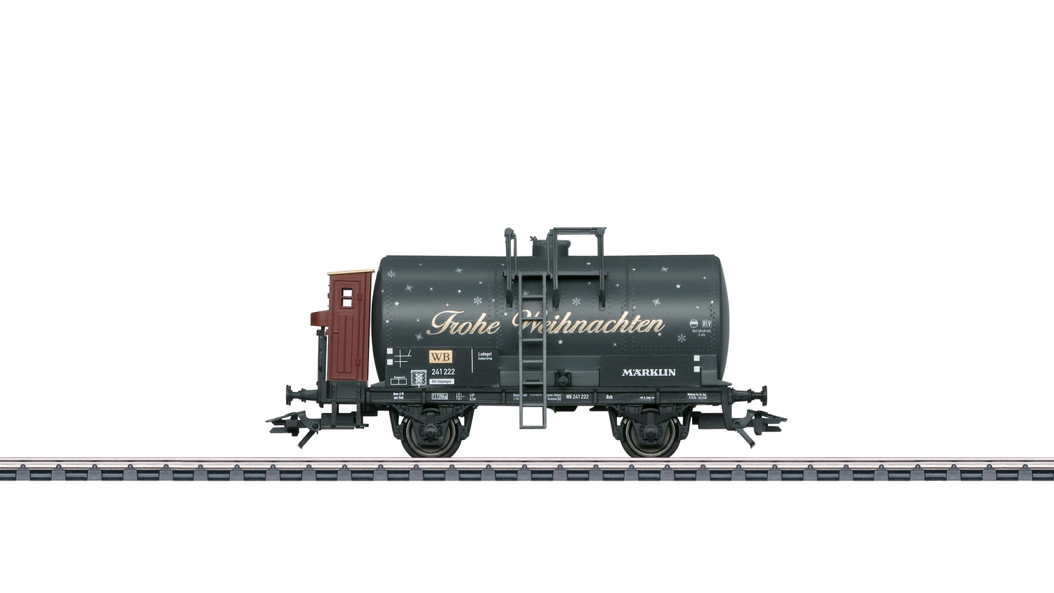 Carro a 2 assi con garitta del frenatore della Ferrovia di Natale (Weihnachts-Bahn | WB) in livrea nera con decorazioni natalizie.