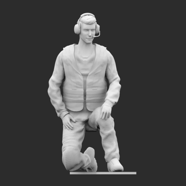 Download figurino dettagliato in formato STL, ideale per la stampa 3D a resina ma idoneo anche per la tecnologia FDM. Operatore di terra inchinato al lavoro versione C.