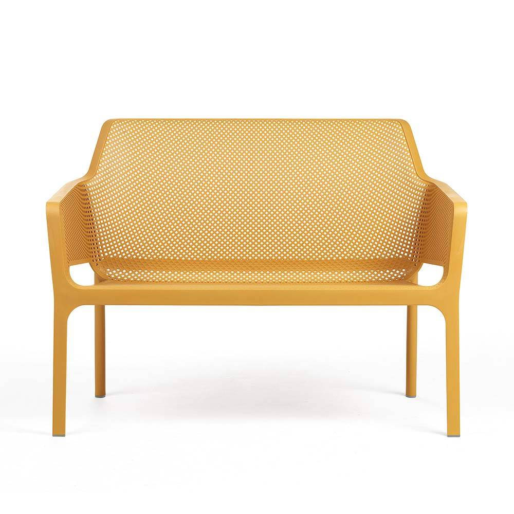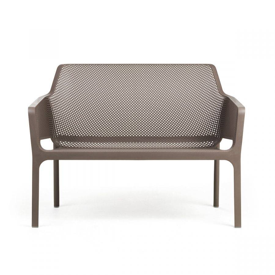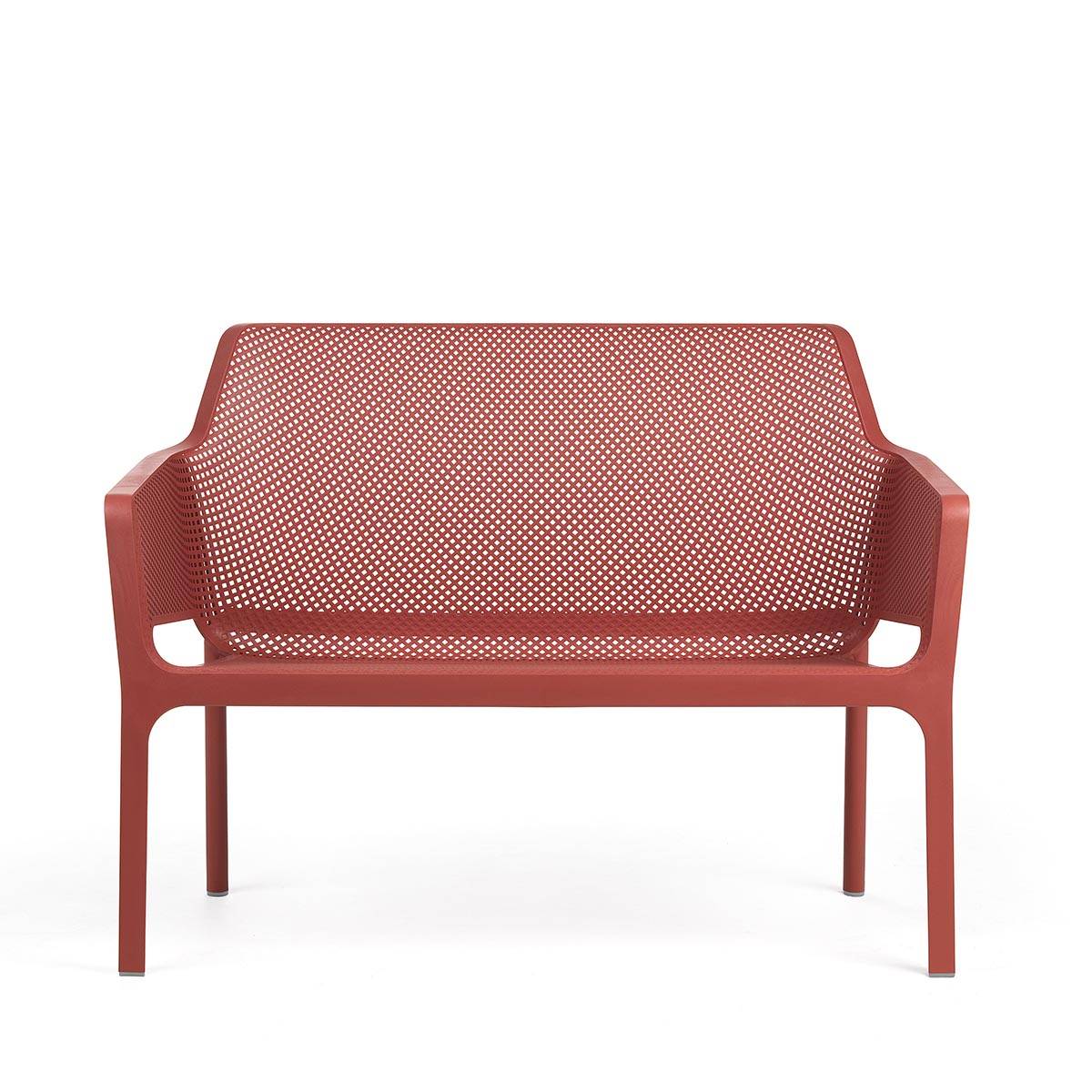 Net Bench è una panchina per esterni a due posti in polipropilene fiberglass trattato anti-UV, colorato in massa con finitura opaca, caratterizzata da un motivo a fori quadrati e raggiati. Presenta linee pulite, profili sottili senza soluzione di continuità e un’ampia gamma di cuscini a corredo (disponibili in aggiunta in negozio).