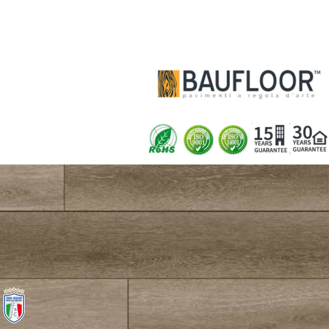 FINITURE PROFESSIONALI: La texture che caratterizza la decorazione della doga è stampata con colori e motivi che riprendono perfettamente l’effetto legno del parquet. L’effetto 3D esalta la naturalezza e l’autenticità del legno, grazie alla presenza di nodi e un effetto tattile ed ottico senza precedenti.