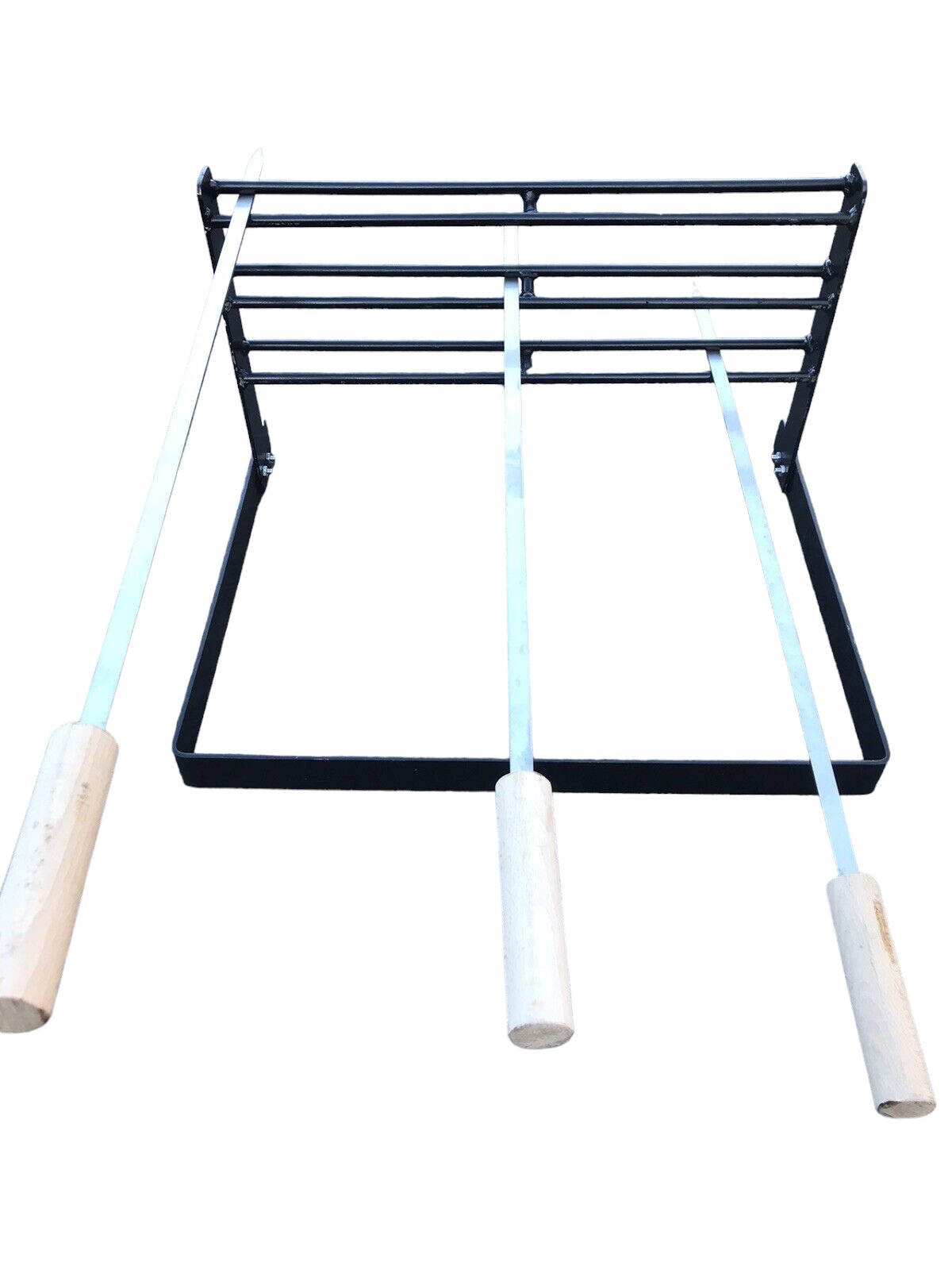 poggia Spiedi regolabile brace. Molto pratico per variare le cotture in base al fuoco su tre altezza prodotto fatto a mano prodotto molto resistente nota bene il prezzo si intende solo della struttura poggia Spiedi esclusi gli spieghi che si possono aggiungere su richiesta in base alla quantità desiderata nel caso contattare 3668988072