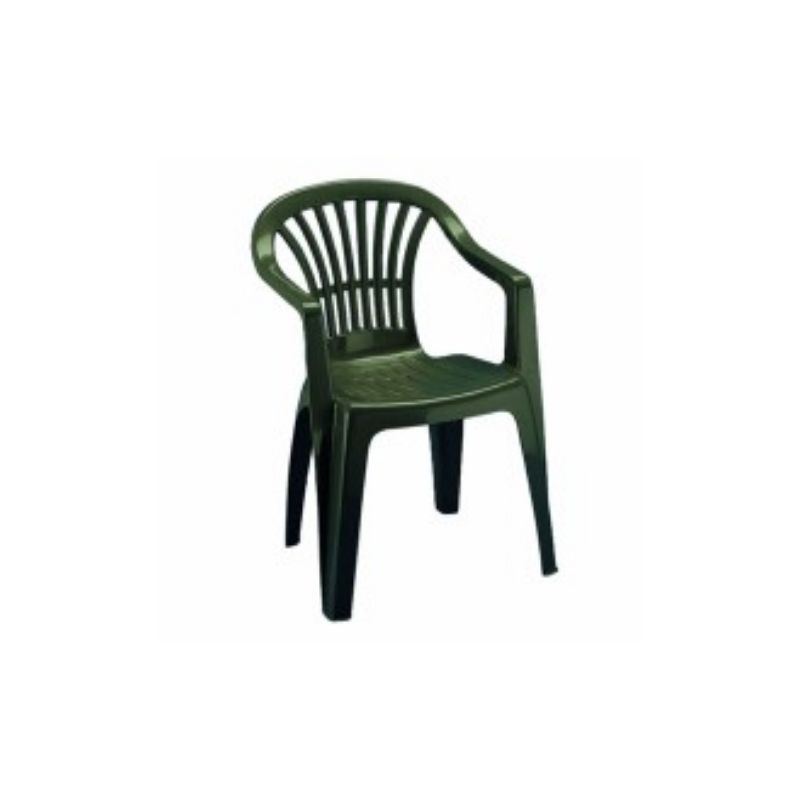 Sedia in resina con braccioli e impilabile. Resiste agli agenti atmosferici.