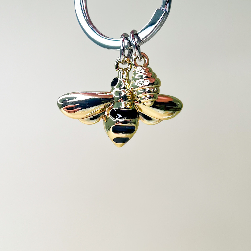 Aggiungi un tocco di charme al tuo mazzo di chiavi con questo delizioso portachiavi a forma di ape, realizzato in metallo di alta qualità.