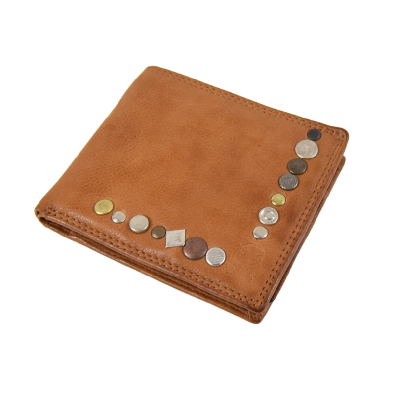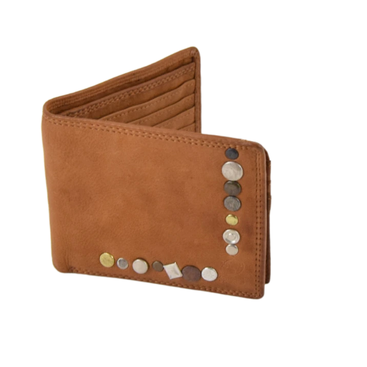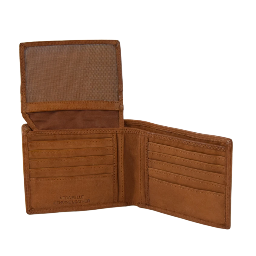 Il portafoglio Line, realizzato in cuoio vacchetta lavata, che risulta essere molto morbide e dallo stile vintage, è composto da 18 tasche porta tessere e documenti, doppio scomparto per le banconote e non presenta il taschino per le monete. Ha come misure 12x10x1cm.