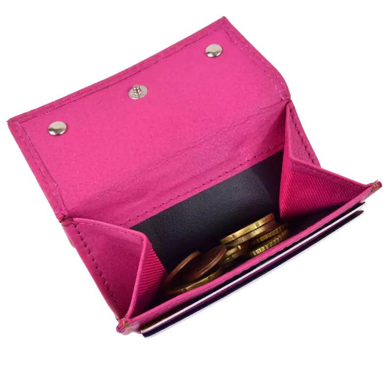 Ciò che lo rende così compatto è la sua composizione a doppia apertura, in cui da una parte si trova lo spazio per riporre le banconote e girandolo si ha il portamonete con integrato i porta tessere.