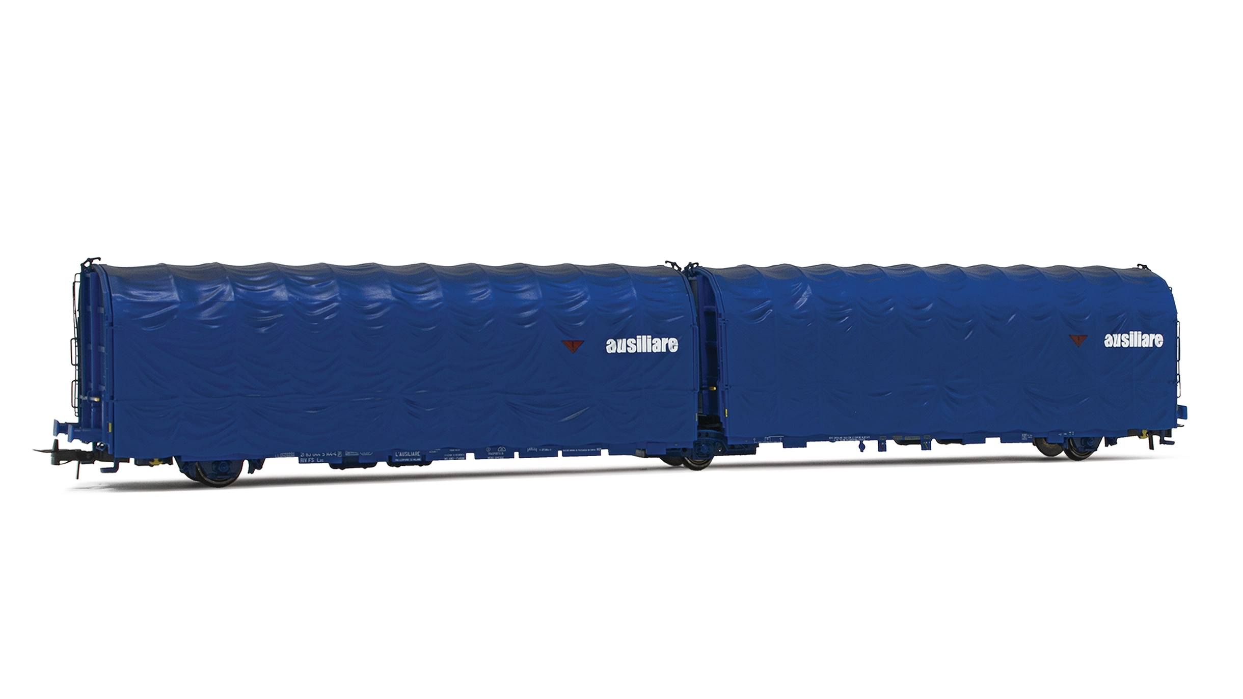 Carro telonato a 3 assi Tipo Las delle Ferrovie dello Stato Italiane (FS), in livrea blu “Ausiliare”, epoca IV.