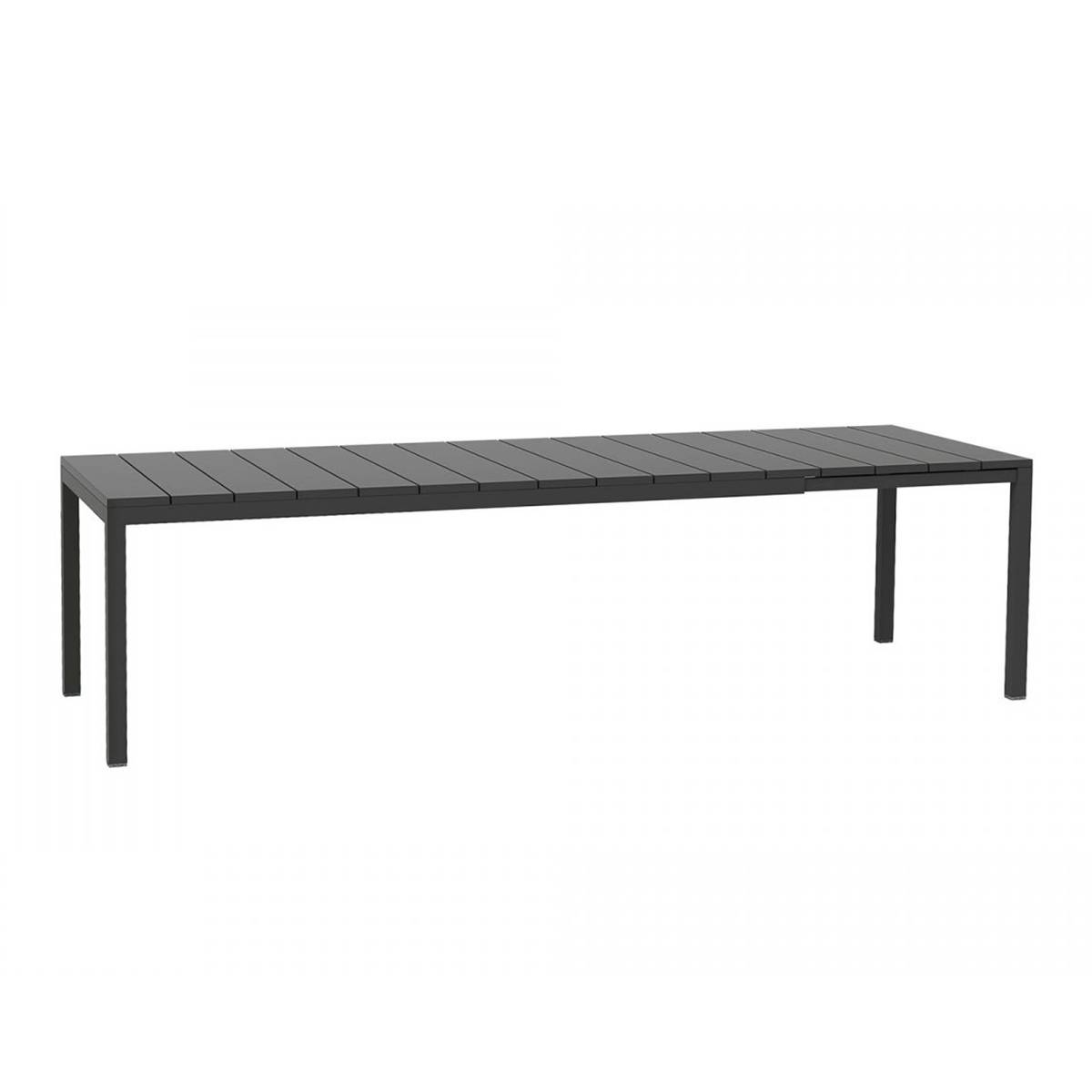 Tavolo allungabile Rio dai dettagli architetturali e spiccata personalità. Piano dogato in resina DurelTop trattata anti-UV e colorata in massa e struttura in alluminio verniciato. Solido e funzionale, è disponibile in due misure: 140/210 e 210/280.