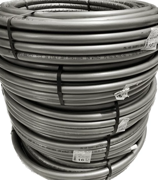 Tubo multistrato: Strato esterno in PE-Xc + Collante + Strato intermedio in alluminio + collante + Strato interno in PE-Xc