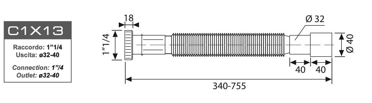 Tubo estensibile/comprimibile cromato, sifone universale.