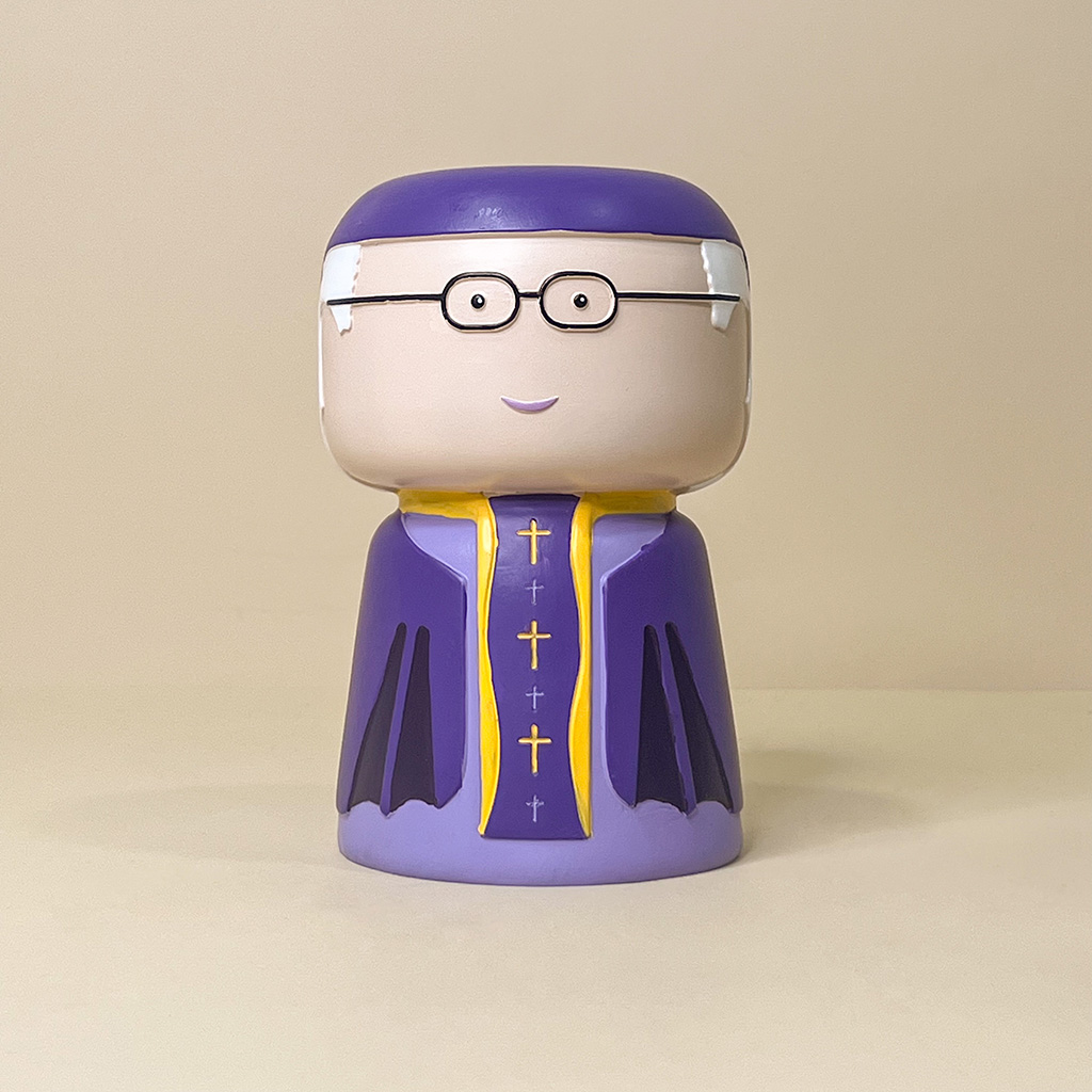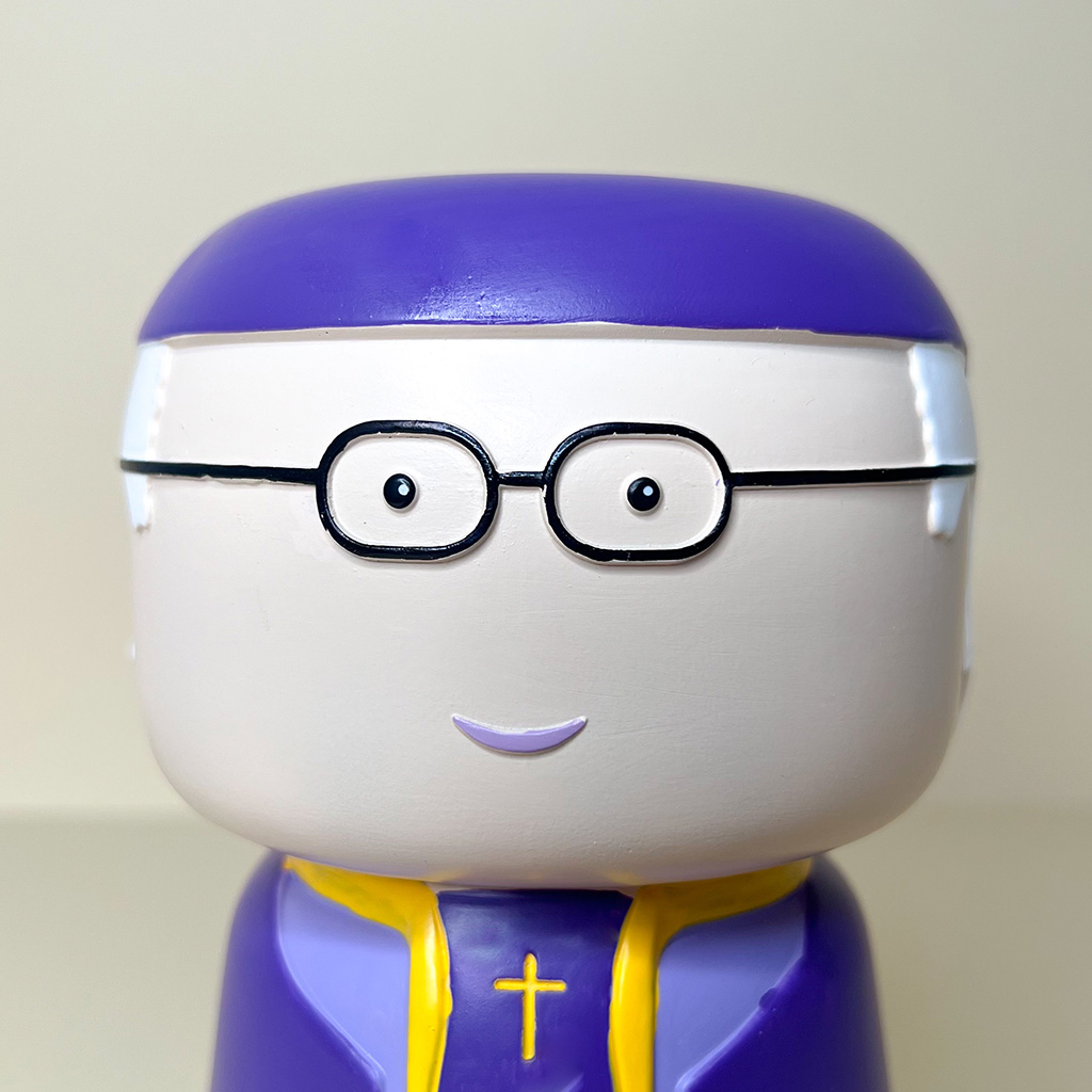 Immagina un vaso porta oggetti che combina sacralità e funzionalità, celebrando la figura del Papa.